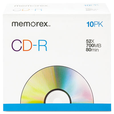 MEM04514 CD-R Discs, 700MB/80min, 52x, w/Slim Jewel Cases, Silver, 10/Pack By MEMOREX