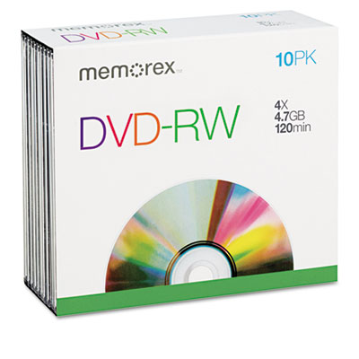 MEM05512 DVD-RW Discs, 4.7GB, 4x, w/Slim Jewel Cases, Silver, 10/Pack By MEMOREX