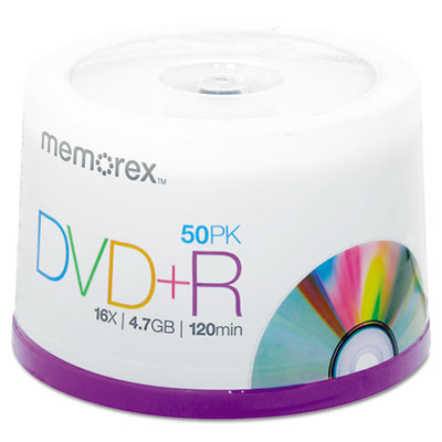 MEM05619 DVD+R Discs, 4.7GB, 16x, Spindle, Silver, 50/Pack By MEMOREX