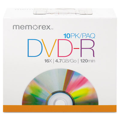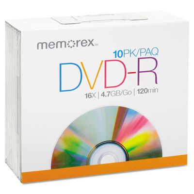MEM05669 DVD-R Discs, 4.7GB, 16x, w/Slim Jewel Case, Silver, 10/Pack By MEMOREX
