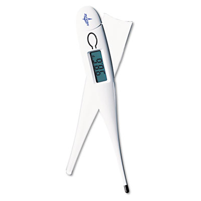 Digital thermometer provides an accurate temperature as quickly as 60 seconds. The simple push-button start and large LCD screen make taking temperatures a quick and easy process. Measures in degrees Fahrenheit or degrees Celsius. Read-Out Type: Digital; Quantity: 1 each.