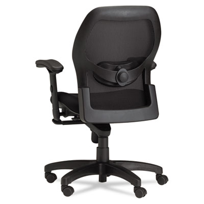 Stylish combination of fabric and mesh for total comfort. Lumbar support helps reduce back pain. Arms adjust to accommodate each user's needs. Moves with ease on casters. Recommended Applications: Executive & Management; Seat/Back Color: Black; Features & Functions: Integral Lumbar Support; Pneumatic Height Adjustment; Tilt Tension/Tilt Lock.