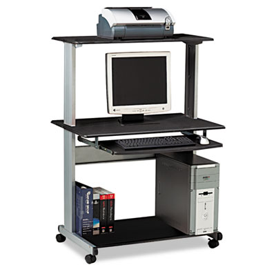 Riser and base shelf support a variety of computer equipment; lower shelf supports CPU tower. Full-width retractable keyboard platform. Color: Anthracite; Overall Width: 36 3/4"; Overall Depth: 21 1/4".