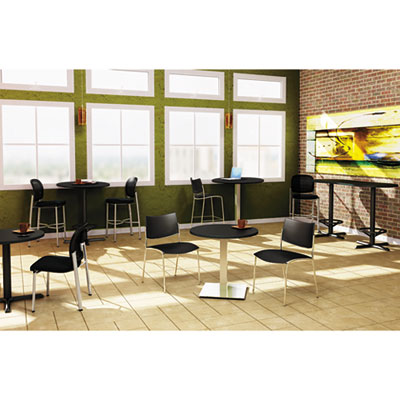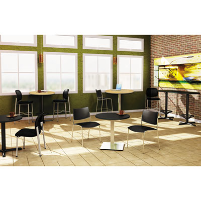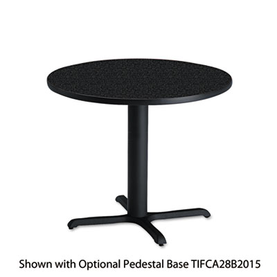 Furniture-grade particle board core features a sturdy, 1 1/8" thick low-pressure round laminate top. T-mold edging for added durability and style. Top and Base sold and shipped separately—ORDER BOTH. Top Color: Charcoal Anthracite; Top Shape: Round.