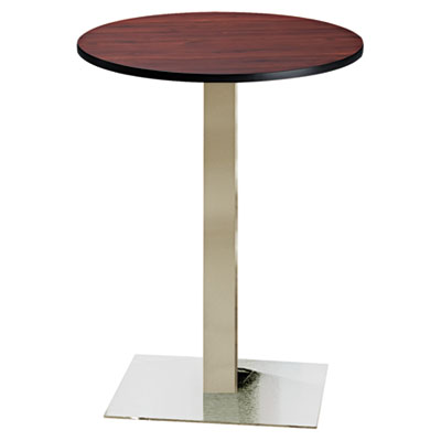 Furniture-grade particle board core features a sturdy, 1 1/8" thick low-pressure round laminate top. T-mold edging for added durability and style. Top and Base sold and shipped separately—ORDER BOTH. Top Color: Mahogany; Top Shape: Round.