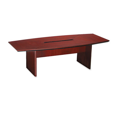 Italian-influenced style adds a touch of sophistication to your executive office setting. AA-grade hardwood veneer is hand-selected to ensure matching grain patterns. 14-step handcrafted finishing process including two final coats of catalyzed lacquer for heat- and stain-resistance. Unique boat shape maximizes seating capacity. Convenient built-in cable management panel with flush, removable steel cover. Top and Base sold and shipped separately—ORDER BOTH. Top Color: Sierra Cherry; Top Shape: Boat.
