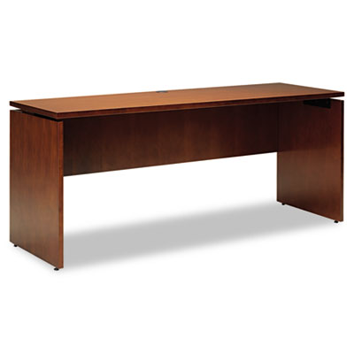 Simple yet elegant styling with a floating top design on worksurfaces. Beautiful Birch veneer protected by a durable UV coating. Use alone or with Desk and Credenza to create "U" configuration. Color: Toffee.