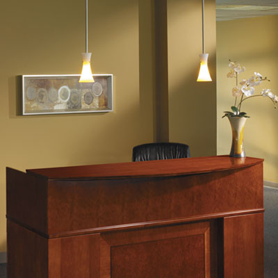 MLNSRCSCR Sorrento Series Reception Desk Counter with Wood Veneer Top, Bourbon Cherry By MAYLINE COMPANY