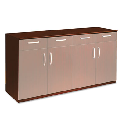 Designed for both food and beverage services and audio/visual applications. AA-grade select hardwood veneer; surfaces are protected with two coats of high-tech catalyzed lacquer to ensure durability and hardness. Four doors conceal two cabinet areas, each with an adjustable shelf. Four drawers operate smoothly on full-extension ball bearing suspensions. Convenient A/V support with cable pass-throughs and inset back panel for wall plug clearance. Cabinet and Doors/Drawers sold and shipped separately—ORDER BOTH. Color: Sierra Cherry.