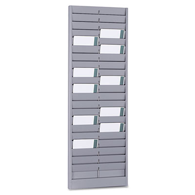 Perfect for mounting near access doors and security entrances to organize swipe cards and badges. Forty-compartment rack of heavy-gauge steel construction. Predrilled holes for mounting. Color(s): Gray; Overall Width: 8 1/8"; Overall Depth: 1/2".