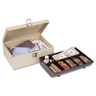 MMF221612003 Heavy-Duty Steel Cash Box w/7 Compartments, Latch Lock, Sand By MMF INDUSTRIES