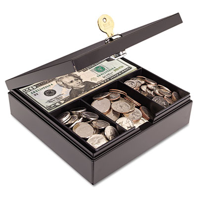 Securely mounts to inside of drawer (screws included). Protects cash, jewelry and other valuables. Removable four-compartment tray. Welded steel body with full-length piano hinge. Cash Drawer/Box/Tray Type: Drawer.