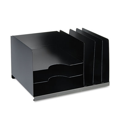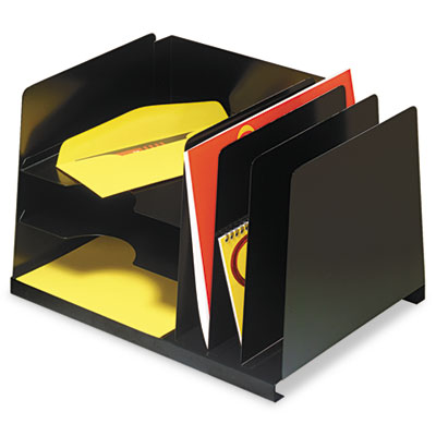 The perfect combination for desktop organization. Great for storing books, notepads, file folder, binders and much more. Features three letter-size horizontal compartments and three large-capacity vertical compartments. Heavy-gauge, welded steel construction. Scratch- and chip-resistant finish. Nonskid, no-scuff feet. Desktop File Folder Sorter Type: Combination File Sorter; Number of Compartments: 6; Material(s): Steel.