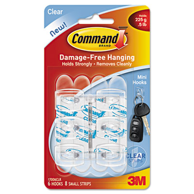 MMM17006CLR Clear Hooks and Strips, Plastic, Mini, 6 Hooks with 8 Adhesive Strips per Pack By 3M/COMMERCIAL TAPE DIV.