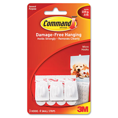 Utility hook with Command™ adhesive is quick and easy to put-up and take-down. The separate backing strip adheres firmly to flat surfaces--but will not damage wall when removed. Hanger/Hook Type: Hook.