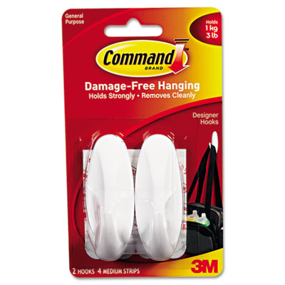 MMM17081 General Purpose Hooks, Designer, Holds 3 lbs., White, 2/Pack By 3M/COMMERCIAL TAPE DIV.