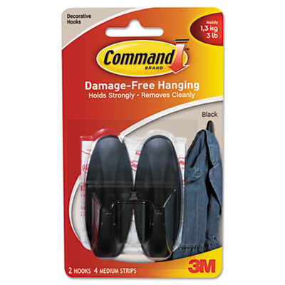 Decorative hooks with Command™ adhesive strips hold strongly yet can be removed cleanly with no surface damage. Black. Hanger/Hook Type: Hook.
