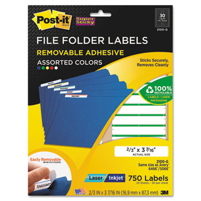 MMM2100G Removable File Folder Labels, 2/3 x 3 7/16, Assorted, 750/Pack By 3M/COMMERCIAL TAPE DIV.