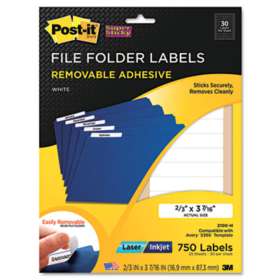 MMM2100H Removable File Folder Labels, 2/3 x 3 7/16, White, 750/Pack By 3M/COMMERCIAL TAPE DIV.