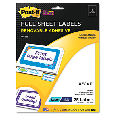 MMM2500L Removable ID Labels, 8-1/2w x 11,h White, 25 Labels/Pack By 3M/COMMERCIAL TAPE DIV.