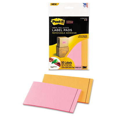MMM2900OP Removable Label Pads, 2-7/8w x 4-5/8h, Orange/Pink, 50 Labels/Pack By 3M/COMMERCIAL TAPE DIV.