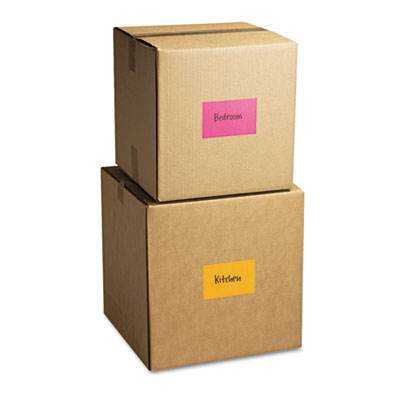 Write, peel and stick! Compact, easy-to-use pads allow for quick labeling. Full-adhesive back with perforated tab. Labels stick securely and remove easily. Great for organizing binders, shelves, containers and much more. Label Size - text: 2 7/8 x 4 5/8; Label Color(s): Orange; Pink.