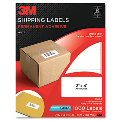 MMM3100T Permanent Adhesive White Laser Mailing Labels, 2 x 4, 1000/Pack By 3M/COMMERCIAL TAPE DIV.