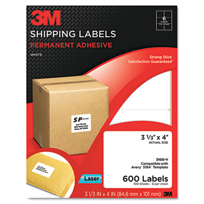MMM3100V Permanent Adhesive White Laser Mailing Labels, 3-1/3 x 4, 600/Pack By 3M/COMMERCIAL TAPE DIV.