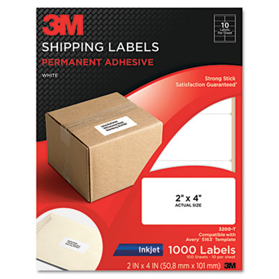 MMM3200T Permanent Adhesive White Inkjet Mailing Labels, 2 x 4, 1000/Pack By 3M/COMMERCIAL TAPE DIV.