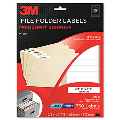 MMM3300H Permanent Adhesive Filing Labels, 2/3 x 3-7/16, White, 750/Pack By 3M/COMMERCIAL TAPE DIV.