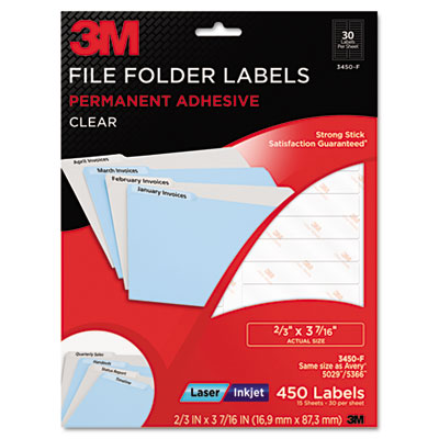 MMM3450F Permanent Adhesive Clear Filing Labels, 2/3 x 3-7/16, Clear, 450/Pack By 3M/COMMERCIAL TAPE DIV.
