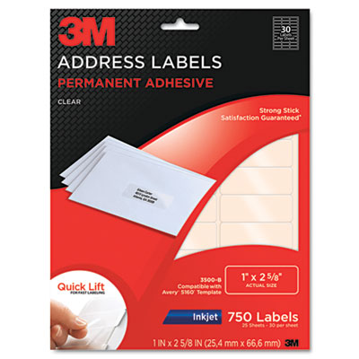 MMM3500B Permanent Adhesive Clear Inkjet Mailing Labels, 1 x 2-5/8, 750/Pack By 3M/COMMERCIAL TAPE DIV.