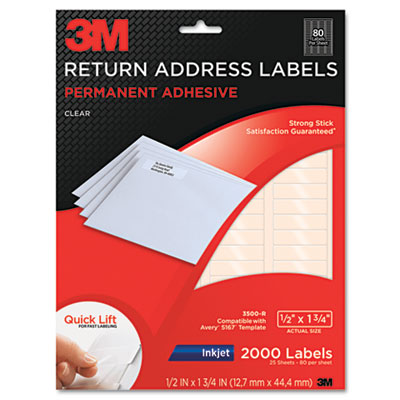 MMM3500R Permanent Adhesive Clear Inkjet Mailing Labels, 1/2 x 1-3/4, 2000/PK By 3M/COMMERCIAL TAPE DIV.