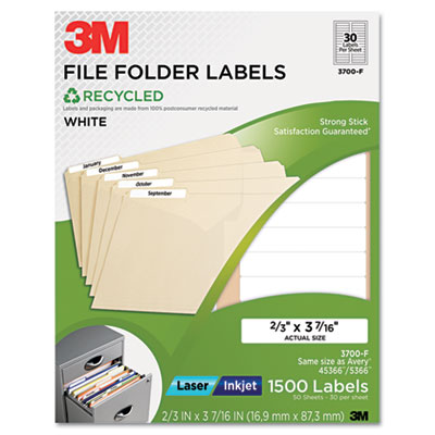 MMM3700F Permanent Adhesive White Recycled Mailing Labels, 2/3 x 3-7/16, 1500/Pack By 3M/COMMERCIAL TAPE DIV.