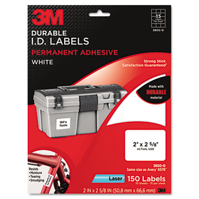 MMM3800D Permanent Adhesive White Durable ID Labels, 2 x 2-5/8, 150 Labels/Pack By 3M/COMMERCIAL TAPE DIV.