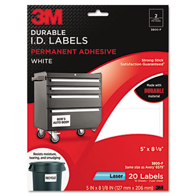 MMM3800F Permanent Adhesive White Durable ID Labels, 5 x 8-1/8, 20 Labels/Pack By 3M/COMMERCIAL TAPE DIV.