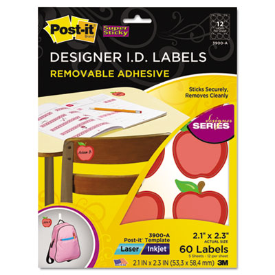 MMM3900A Designer Series Removable ID Labels, 2-1/10 x 2-3/10, Apples, 60/Pack By 3M/COMMERCIAL TAPE DIV.