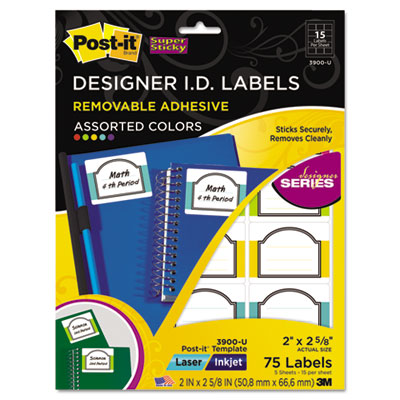 MMM3900U Designer Series Removable ID Labels, 2 x 2-5/8, Assorted, 75/Pack By 3M/COMMERCIAL TAPE DIV.