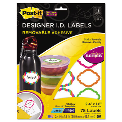 MMM3900V Designer Series Removable ID Labels, 2-4/10 x 1-8/10, Assorted, 75/Pack By 3M/COMMERCIAL TAPE DIV.