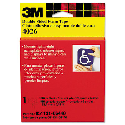 MMM4026 Foam Mounting Double-Sided Tape, 1 Wide x 216 Long By 3M/COMMERCIAL TAPE DIV.