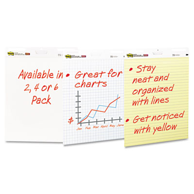 Repositionable sheets stick to more surfaces longer than other easel pads. Sticks securely, removes cleanly and resists marker bleed-through. Pad Type: Easel; Sheet Size: 25" x 30"; Ruling: Unruled.