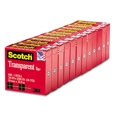 MMM600K12 Transparent Tape, 3/4" x 1000", 1" Core, Clear, 12/Pack By 3M/COMMERCIAL TAPE DIV.