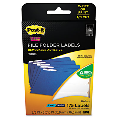 MMM6200HS Removable File Folder Labels, 2/3 x 3-7/16, White, 175/Pack By 3M/COMMERCIAL TAPE DIV.
