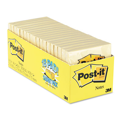 MMM65418CP Cabinet Pack, 3 x 3, Canary Yellow, 18 90-Sheet Pads/Pack By 3M/COMMERCIAL TAPE DIV.