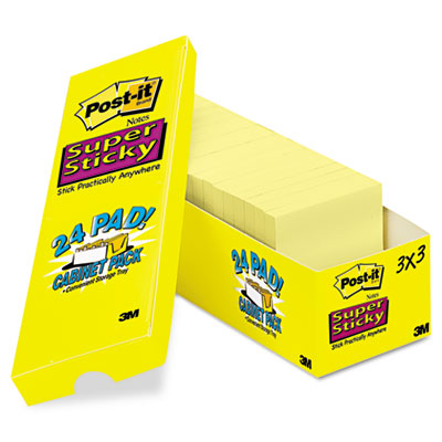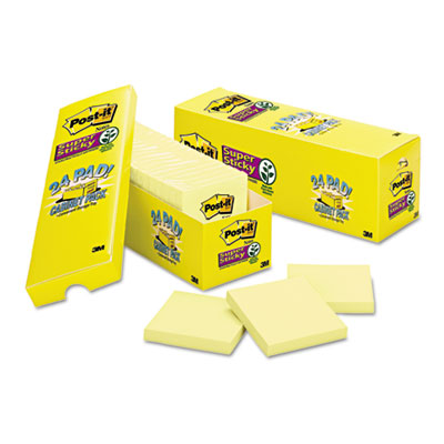 MMM65424SSCP Super Sticky Notes, 3 x 3, Canary Yellow, 24 90-Sheet Pads/Pack By 3M/COMMERCIAL TAPE DIV.