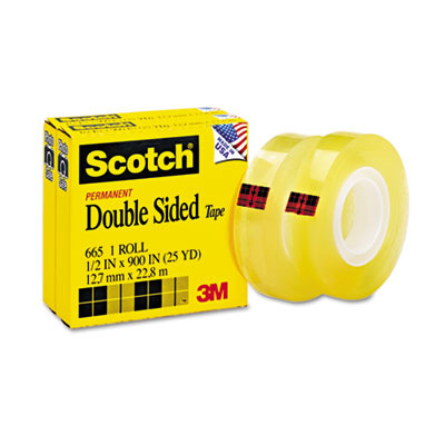 MMM6652PK 665 Double-Sided Office Tape, 1/2" x 900", 1" Core, Clear, 2/Box By 3M/COMMERCIAL TAPE DIV.