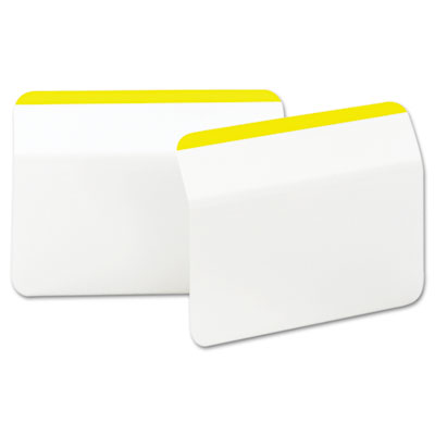 Self-stick hanging file tabs are angled to see from above. Can be repositioned as needed. Easy to write on. White tab has accent color to aid color coding. White tab has accent color to aid color coding. Pop-up dispenser allows easy access. File Insert/Tab Type: Adhesive File Folder Tabs; Color(s): Yellow.