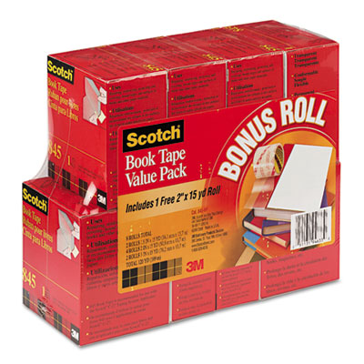 Repairing expensive books and magazines can be a great way to either pass them on or keep them in use at the office. This durable, conformable and transparent tape is designed specifically for repairing, reinforcing, protecting and covering bound edges. It's a great choice for use on books, magazine, pamphlets and more. Comes with a 3" core. Includes two rolls of 1 1/2" width, four rolls of 2" width and two rolls of 3" width and one FREE 2" x 15 yd. roll. Tape Type: Book Preservation; Tape Special Feature: 8-Roll Value Pack with Bonus Roll.