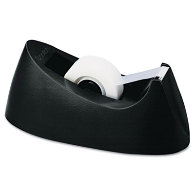 Classic, black desktop office tape dispenser with core looks great in any office. Dispenser is designed to house a variety of office tapes. The attached core helps prevent loss. The weighted base allows you to quickly and easily dispense tape. Tape not included. Tape Dispenser Type: Desktop; For Tape Width: Up to 3/4"; For Tape Length: Up to 1,500".