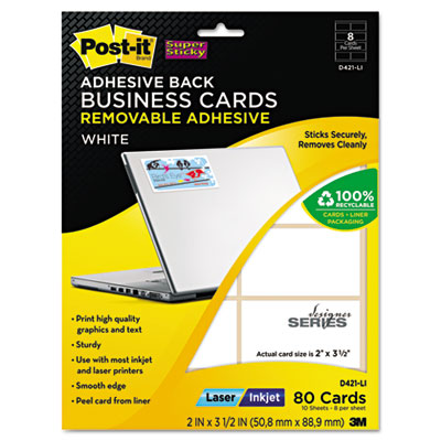 MMMD421LI Adhesive Back Business Cards, 2 x 3 1/2, White, 80/PK By 3M/COMMERCIAL TAPE DIV.